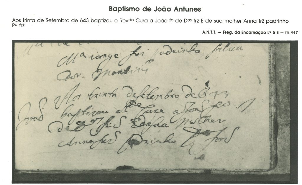 A 30 de setembro de 1643 era batizado João Antunes, mestre pedreiro e o autor do projeto, escolhido pela Irmandade dos Escravos do Santíssimo Sacramento, da Igreja de Santa Engrácia, atual Panteão Nacional.