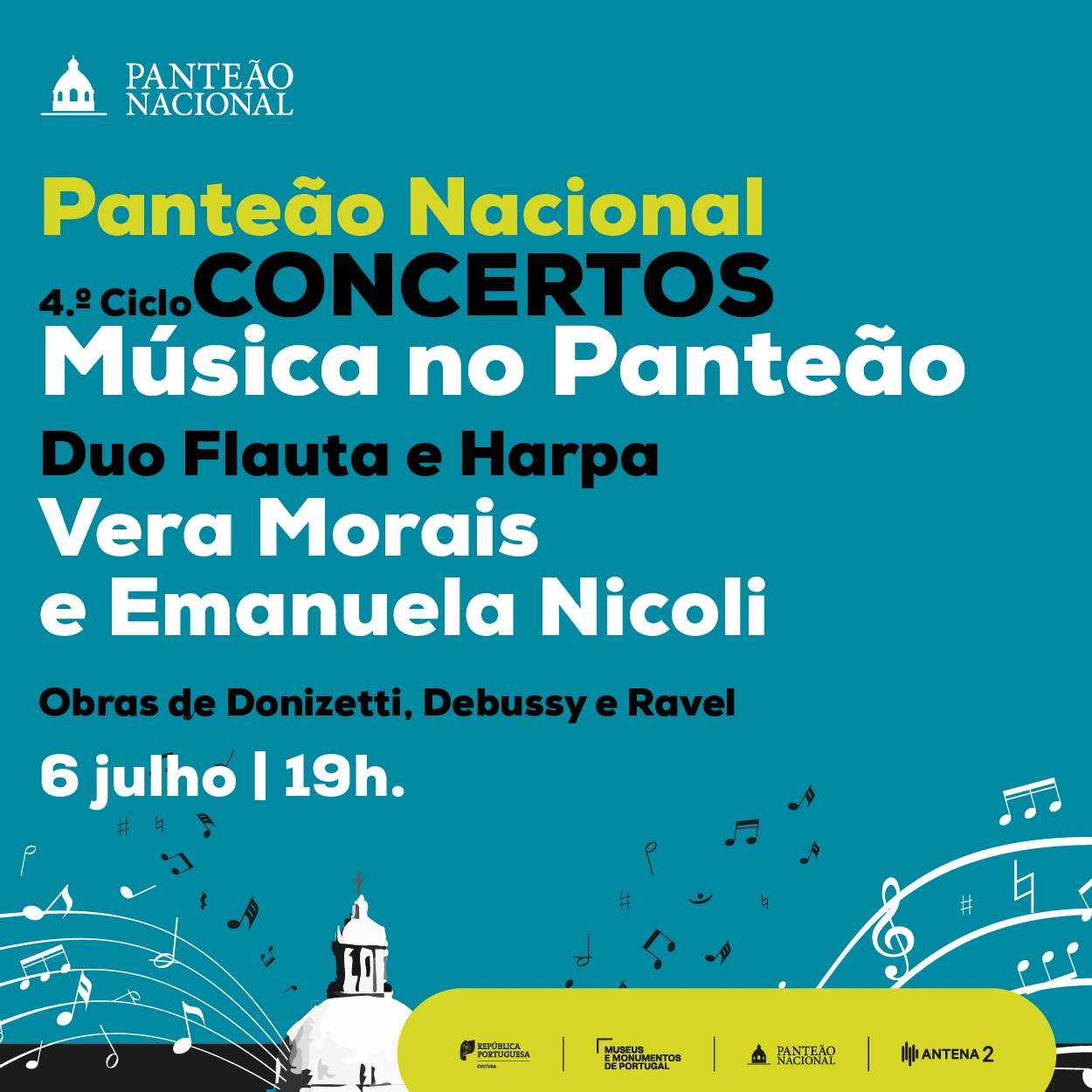 Ler mais…: Música no Panteão4º Ciclo de Concertos – Música no Panteão – Domingo, 6 julho|19h. Duo Solar – Flauta e Harpa Não perca o último concerto do 4º Ciclo de Concertos – Música no Panteão – Duo Solar – Flauta e Harpa Entrada livre limitada à capacidade da sala. Acesso efetuado por ordem de chegada. Não acessível a…